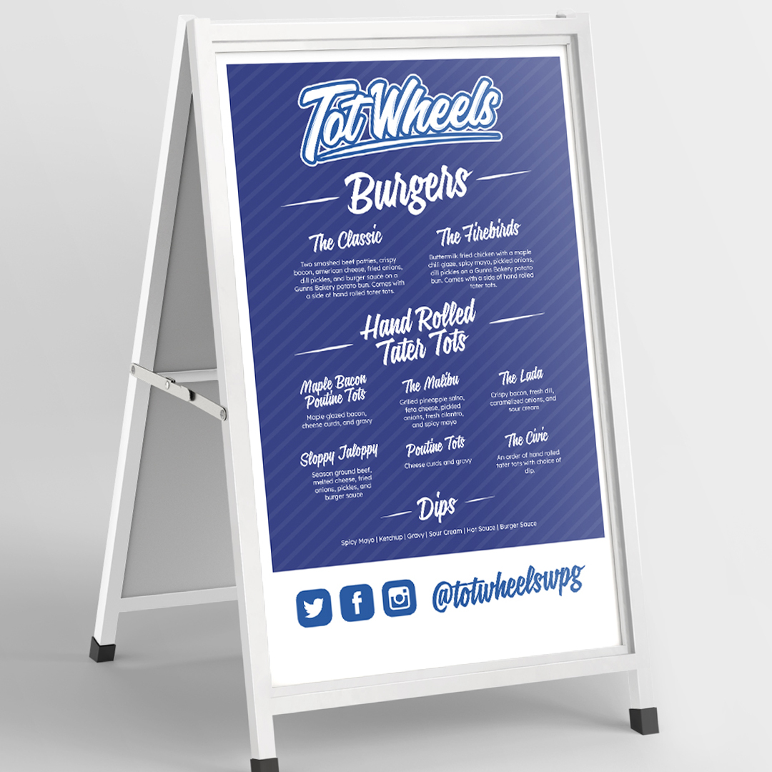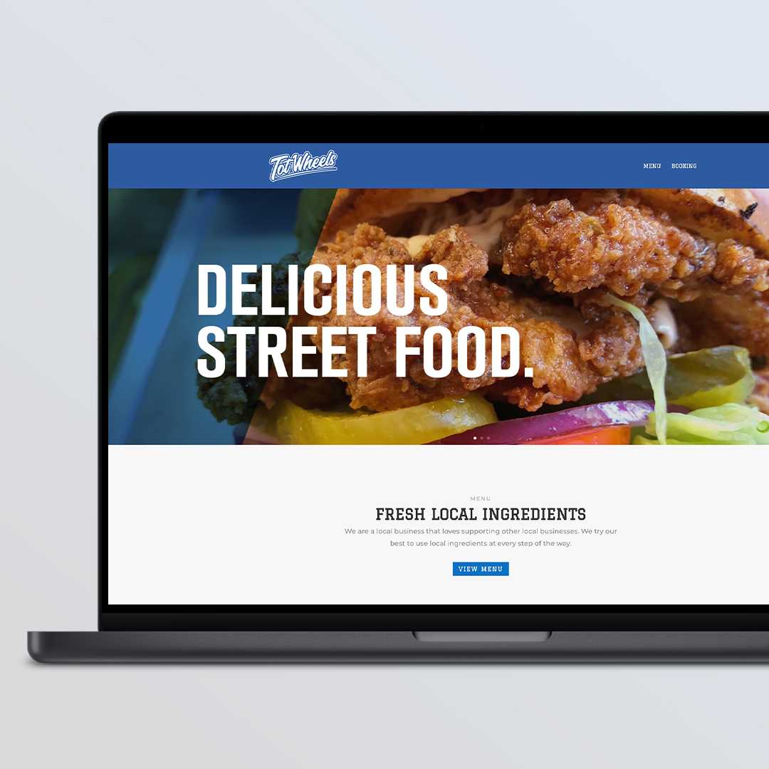 We brought Tot Wheels vision to life through a vibrant new logo, sleek website, and engaging menu design that radiates warmth and approachability. The playful script word mark invites customers to experience the joy of tot creations, while the bold blue palette evokes a sense of community and excitement. Our user-friendly website showcases stunning photography that draws food lovers into the tantalizing menu, making it easy for them to explore their options and book catering with a few simple clicks. This reimagined brand identity not only elevates Tot Wheels in the competitive food truck scene of Winnipeg but also reflects the passion and creativity that goes into every hand-rolled tater tot served.